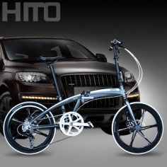 HITO 德国品牌 22寸折叠自行车超轻便携单车男女成人亲子车变速公路车 【22寸】一体轮钛色