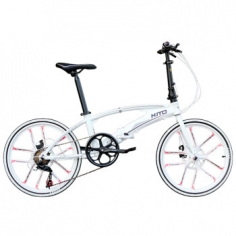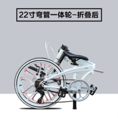 HITO品牌22寸铝合金折叠自行车 超轻 便携碟刹 变速男女成人公路单车 白色一体轮