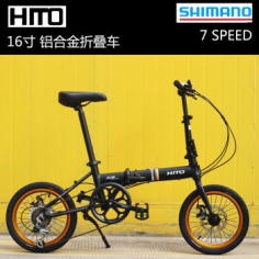 HITO 德国品牌 16寸铝合金折叠自行车 超轻便携 变速男女成人学生单车 黑金色