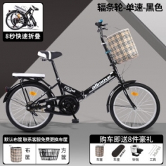 SANGPU折叠自行车成人超轻便携男女式通勤城市休闲单车20寸变速儿童学生 【免安装】单速-辐条轮-黑色 20英寸【适合身高:140-160cm】